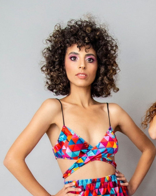 Geometric Colorful Print Wrap Crop Top